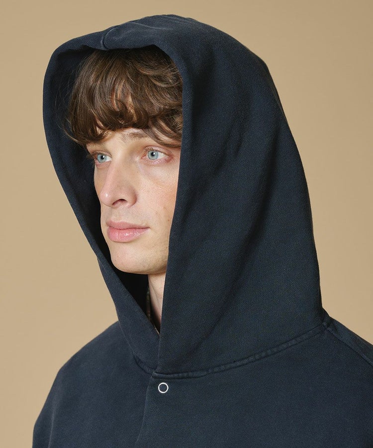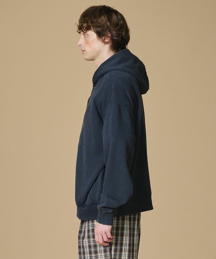 コットン100%の柔らかな肌触りが心地よいパーカー。インディゴ染めによる奥行きのある色合いが、ヴィンテージライクな風合いとこなれた雰囲気を演出します。羽織るだけで、カジュアルからきれいめまで幅広いスタイリングにマッチ。さらに、同素材のパンツ(型番:1706221253)とセットアップで着こなせば、大人らしい抜け感のあるスタイルが完成します。