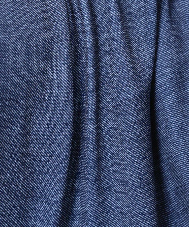 リアルなデニム柄を転写プリントしたデザイン性が高いパンツ。程よい伸縮性と柔らかさを兼ね備えたトリコット素材を採用し、機能面にも配慮しました。カラーは爽やかなサックスとシックなインディゴの2色で展開。同素材のTシャツ(型番:0708070253)と合わせれば、一味違うデニムセットアップコーデを楽しめます。