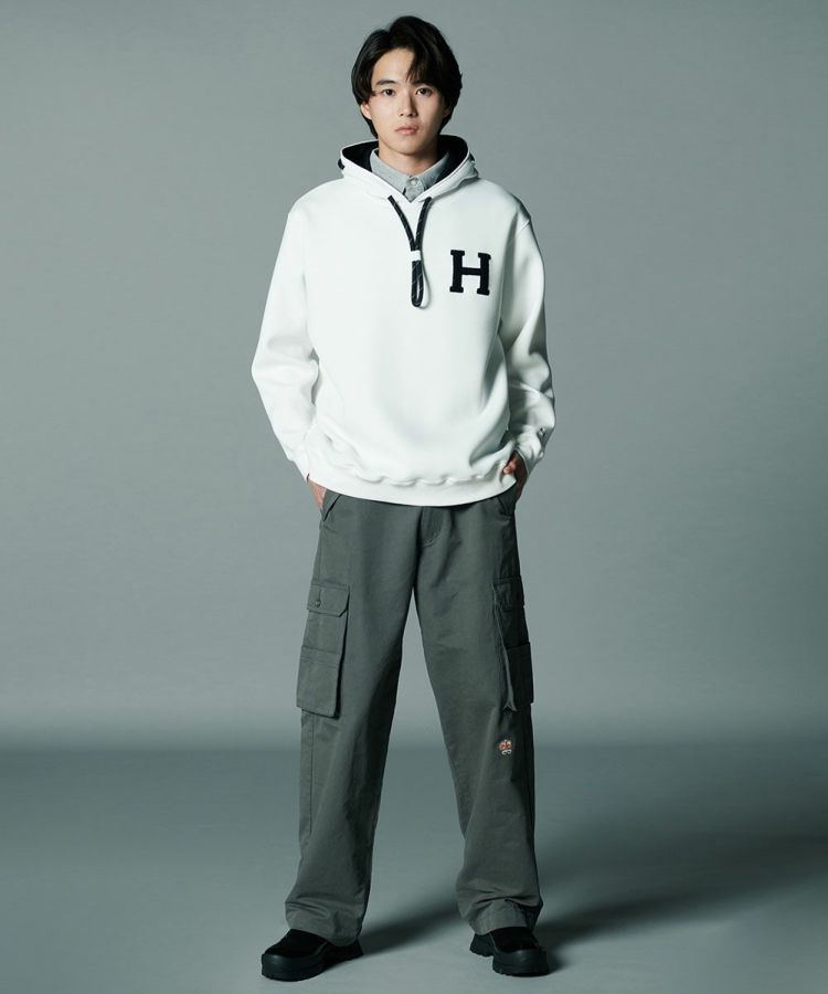 D/him H刺繍ダンボールニットパーカー