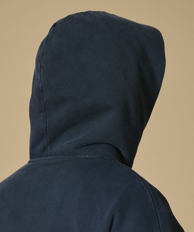 コットン100%の柔らかな肌触りが心地よいパーカー。インディゴ染めによる奥行きのある色合いが、ヴィンテージライクな風合いとこなれた雰囲気を演出します。羽織るだけで、カジュアルからきれいめまで幅広いスタイリングにマッチ。さらに、同素材のパンツ(型番:1706221253)とセットアップで着こなせば、大人らしい抜け感のあるスタイルが完成します。