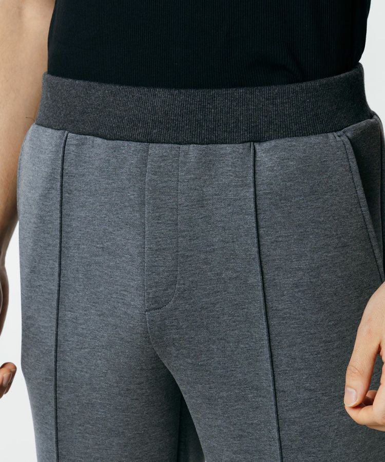 なめらかな手触りと独特の膨らみ感が特徴の、ダンボールニットを使用したパンツ。軽量でストレッチ性にも優れており、快適なはき心地を実現しました。 センタークリース入りのすっきりとしたテーパードシルエットで、ビジネスシーンにも上品な印象に。バックポケットにあしらったロゴ刺繍がさりげないアクセントになっています。