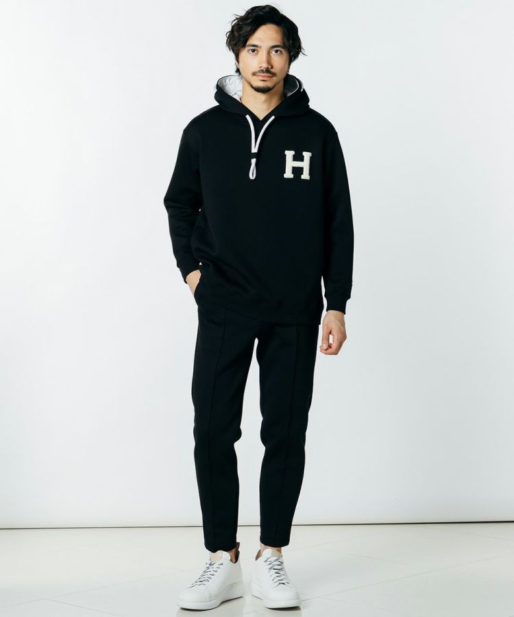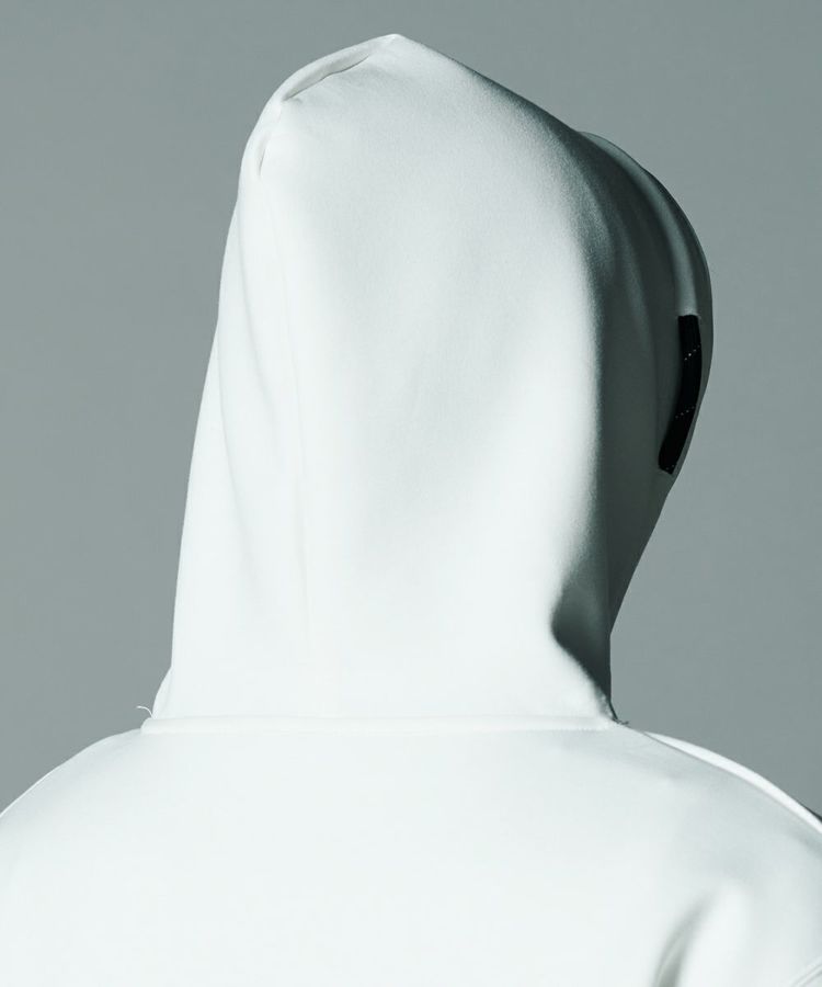 ふっくらとした膨らみ感がリラクシンな印象を与えるダンボールニットのパーカー。なめらかな表面感と上品な光沢感があり、カジュアルになりすぎずきれいめに着られるのが魅力です。程よくゆとりを残しながらも、すっきりとしたシルエットに仕上げているのもポイント。フードのスピンドルがスポーティーなアクセントになっています。