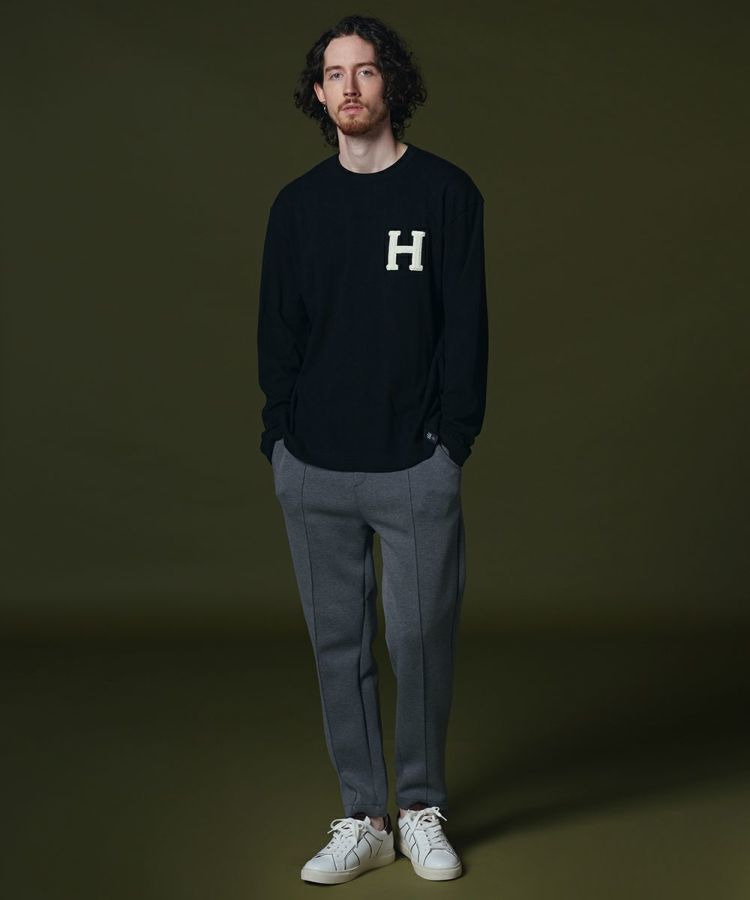 肌触りの心地いいコットン100%で作った、シンプルなロングスリーブTシャツ。胸元に「H」のサガラ刺繍を施しアクセントにしています。大きすぎず、小さすぎない程良いサイズ感で、カジュアルながらもきれいめに着られるのが魅力。デニムやスウェットはもちろん、スラックスに合わせてもサマになる一枚です。