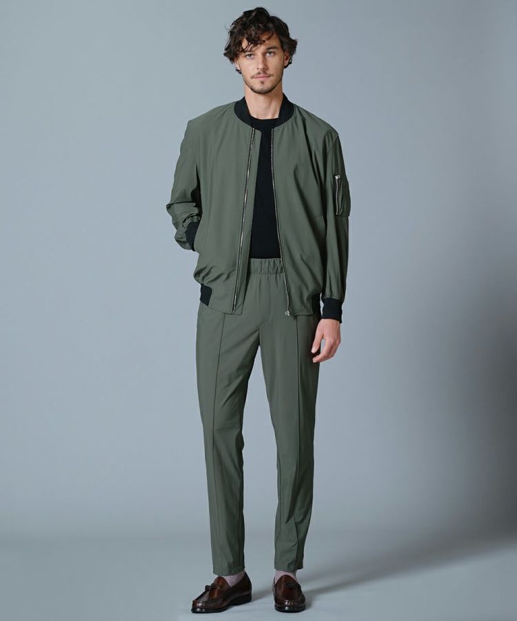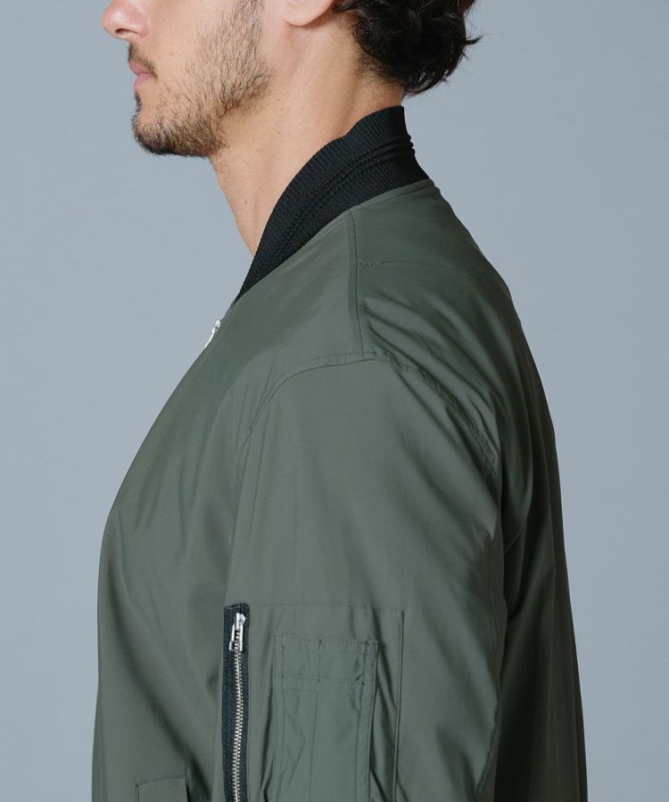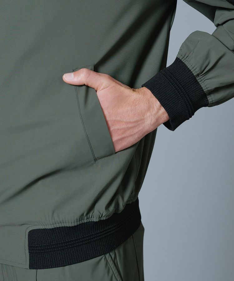 薄手で軽やかなコンチェロナイロンを使用した夏用ブルゾン。さらりと心地良い肌触りながら、接触冷感や紫外線防止機能を兼ね備えた高機能な一着に仕上げました。伸縮性にも優れた素材で、動きやすさもしっかりと配慮。襟や袖、裾がリブ仕様になっているためカジュアルになりすぎず、上品に着こなせるのも魅力です。