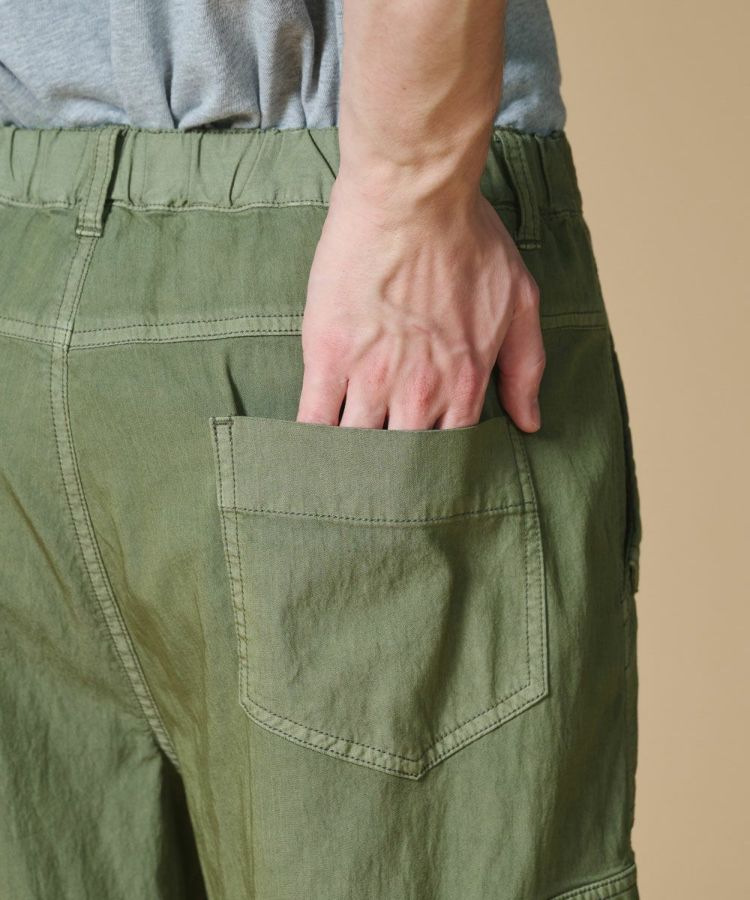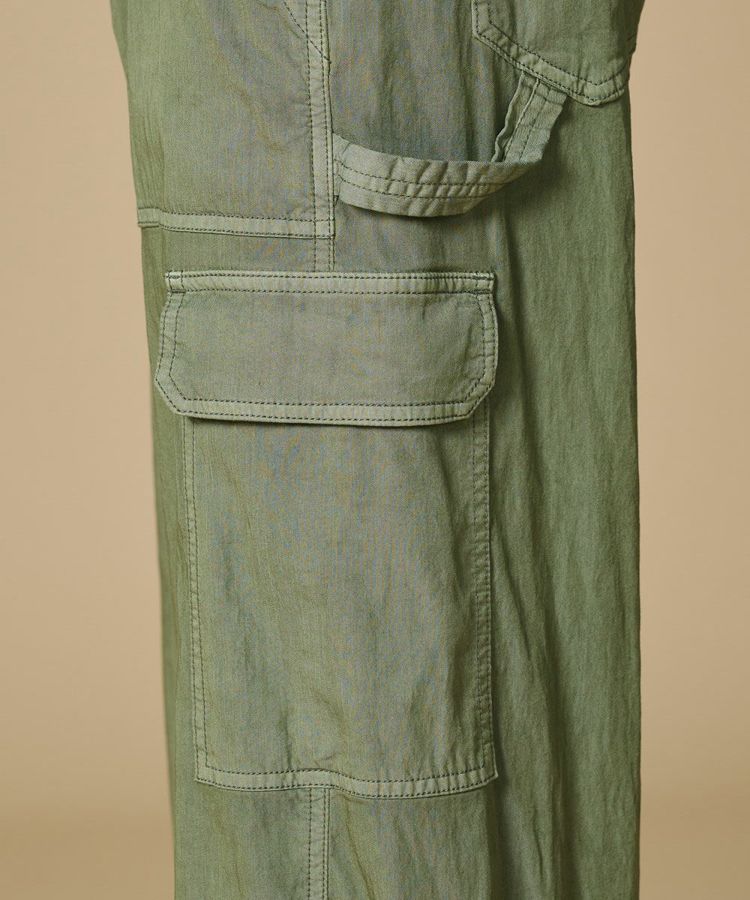 ナチュラルな風合いが魅力のカーゴパンツ。二浴染めの技法を用い、テンセル混素材ならではの滑らかな落ち感が、こなれた印象を演出します。程よくゆとりのあるシルエットで、リラックス感と上品さを両立。カジュアルになりすぎず、きれいめなスタイリングにも対応し、Tシャツを合わせるだけで洗練された着こなしが完成する一本です。
