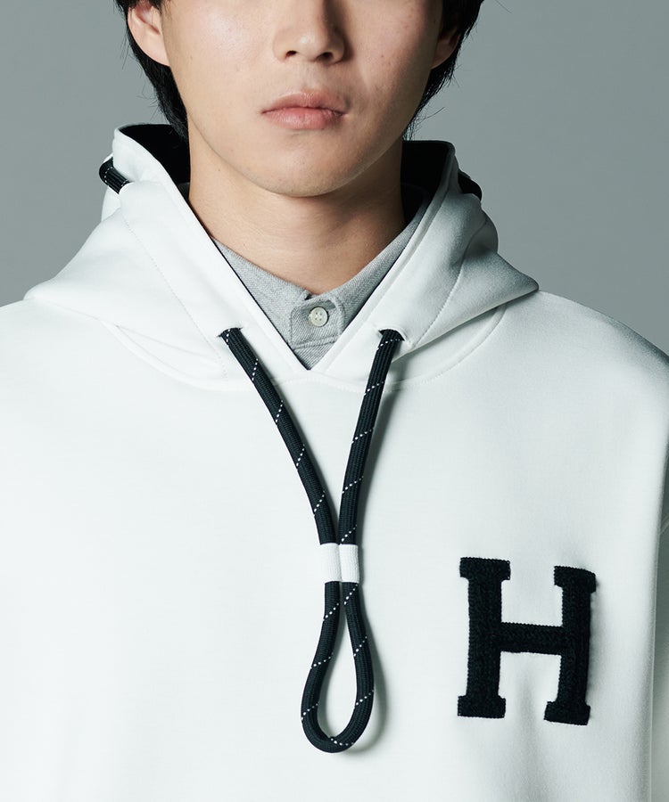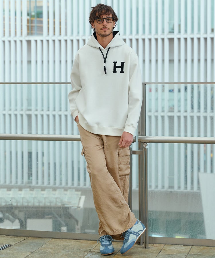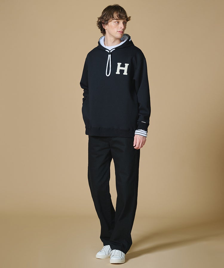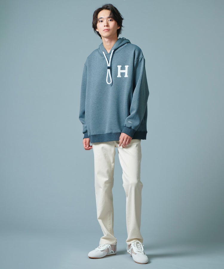 D/him H刺繍ダンボールニットパーカー