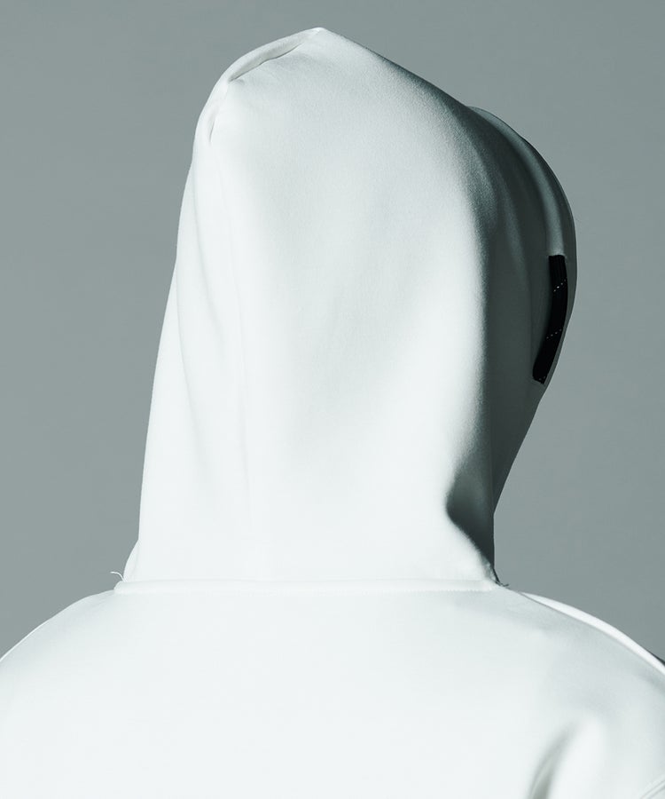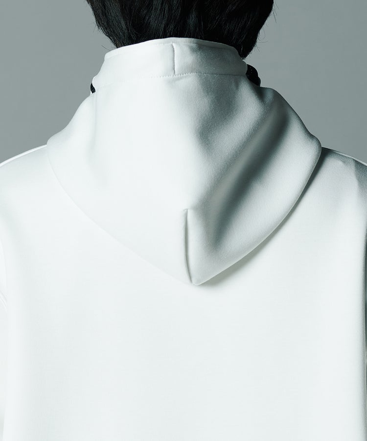 なめらかな表面感と上品な光沢を備えた、ダンボールニット素材のパーカー。ラフになりがちなアイテムながら、きれいめな印象で着こなせるのが魅力です。素材感を活かしたふっくらとしたハリと膨らみが、ほどよくリラクシンなムードを演出。フードのスピンドルがスポーティーなアクセントになり、幅広いスタイリングで活躍します。