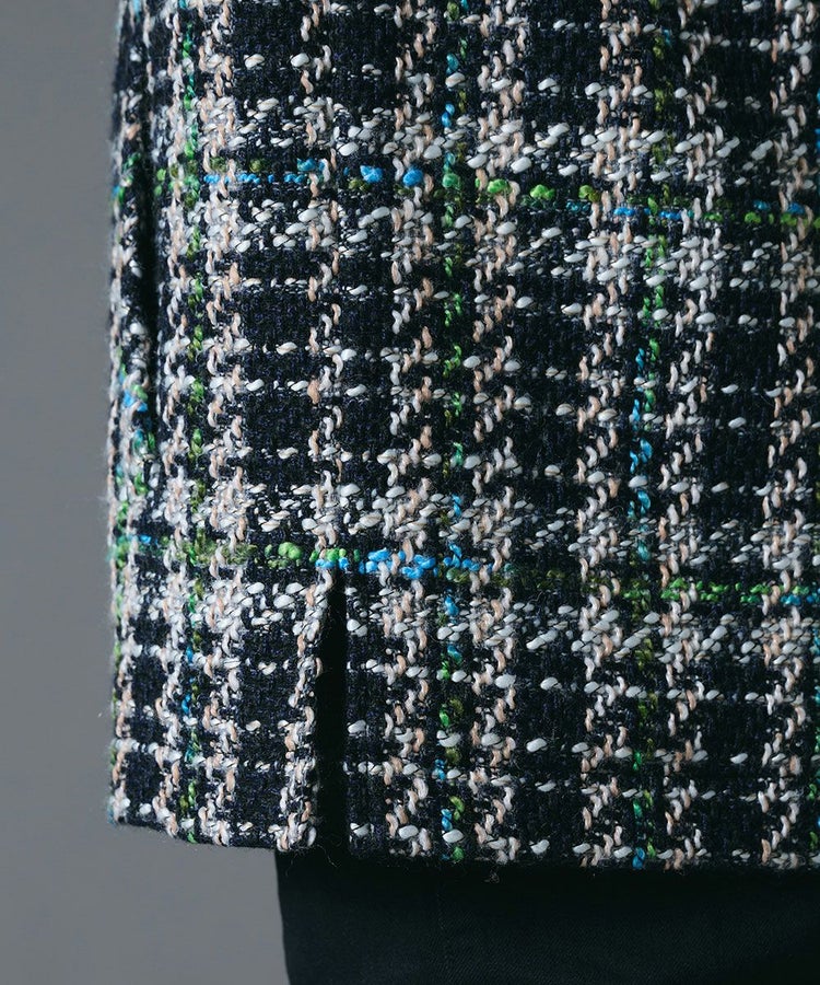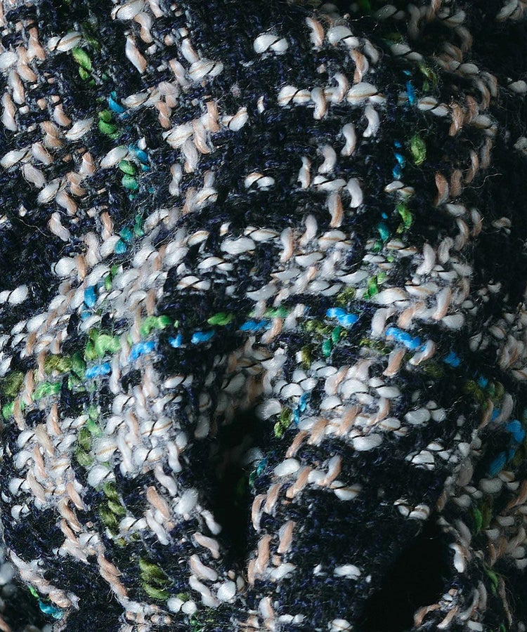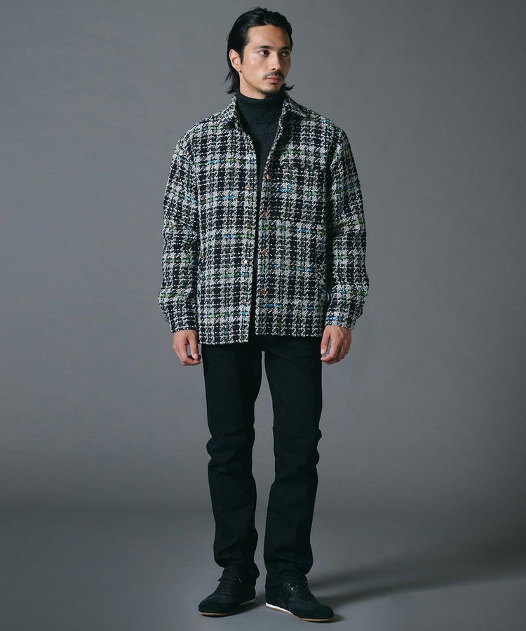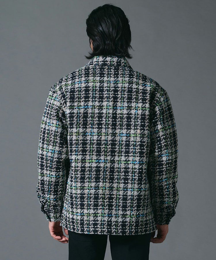 クラシカルな雰囲気漂うツイードシャツ。艶やかなグリーンやブルーを差し色として取り入れ、デザインに華やぎを添えました。カジュアルな印象になりがちなシャツブルゾンも、ツイード素材で仕立てることで上品さが際立ち、大人の余裕を感じさせる仕上がりに。存在感のある一枚は、上質で洗練されたスタイルを演出します。