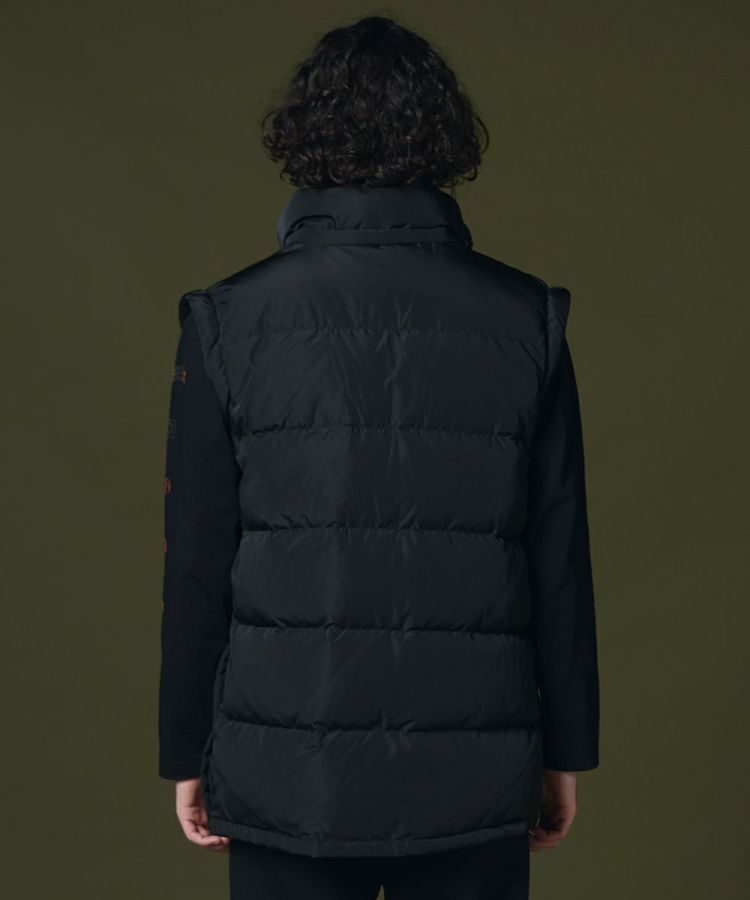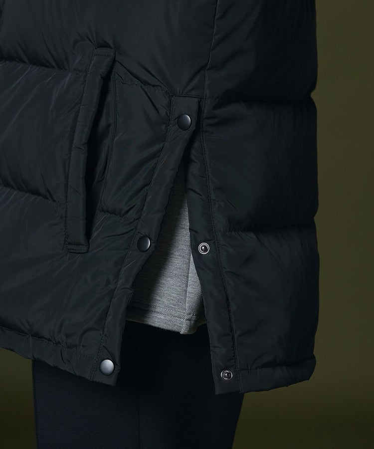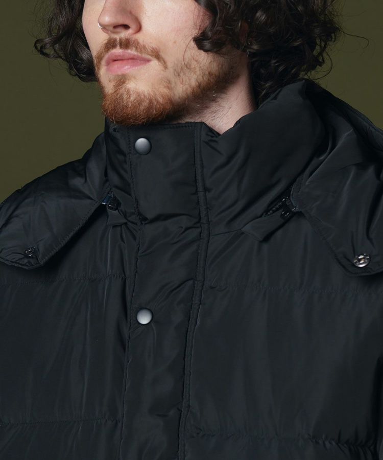 程よいボリューム感がありながらも、きれいなシルエットに仕上げたダウンジャケット。ボタンやジップも同色にすることでミニマムなデザインに。ダウンジャケットでもカジュアルになりすぎず、上品に着られるのが魅力です。また、フードだけでなく袖を取り外してダウンジレとして楽しむことができます。