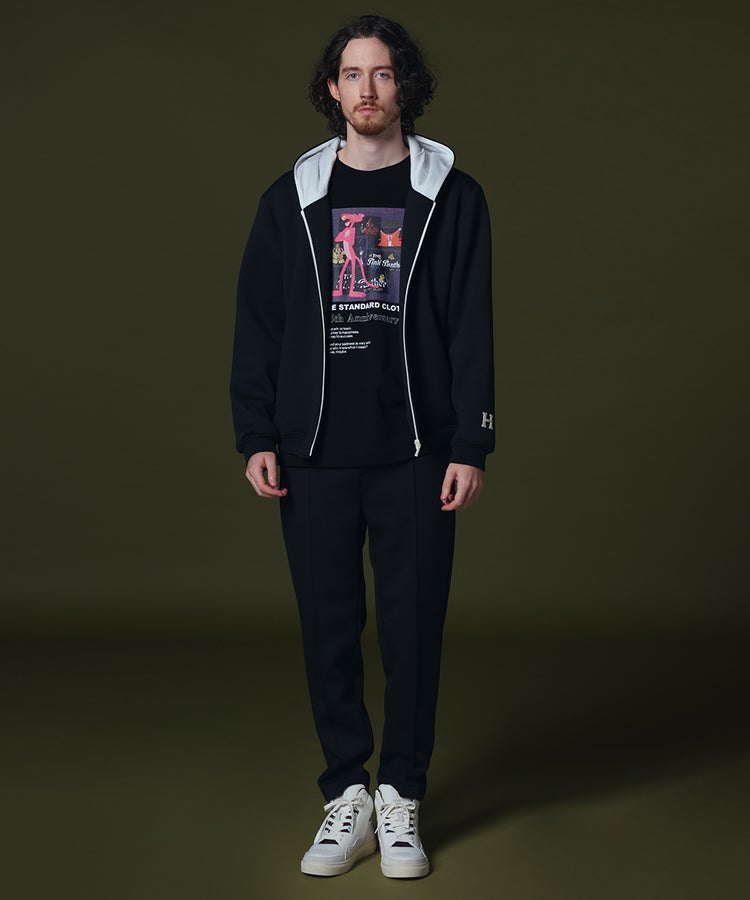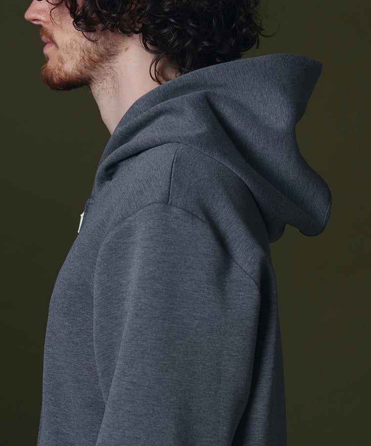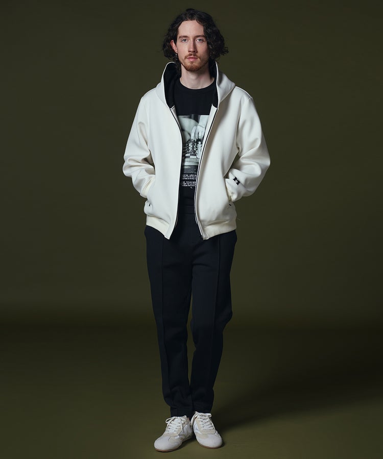 程よいハリのある生地感が上品な印象を与える、ダンボールニット素材のジップパーカー。Tシャツに合わせてもカジュアルになりすぎず、きれいめに着こなせます。袖先には「H」の刺繍を施し、さりげないアクセントをプラス。スタイリッシュなシルエットで、幅広いスタイリングが楽しめます。シワになりにくく、お手入れもカンタン。