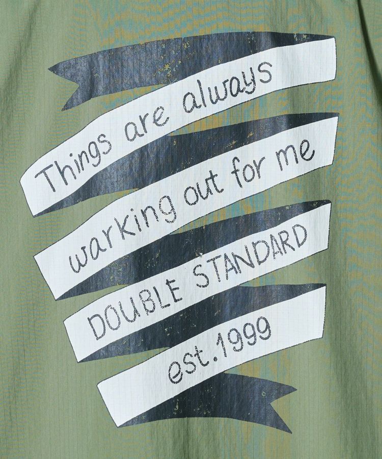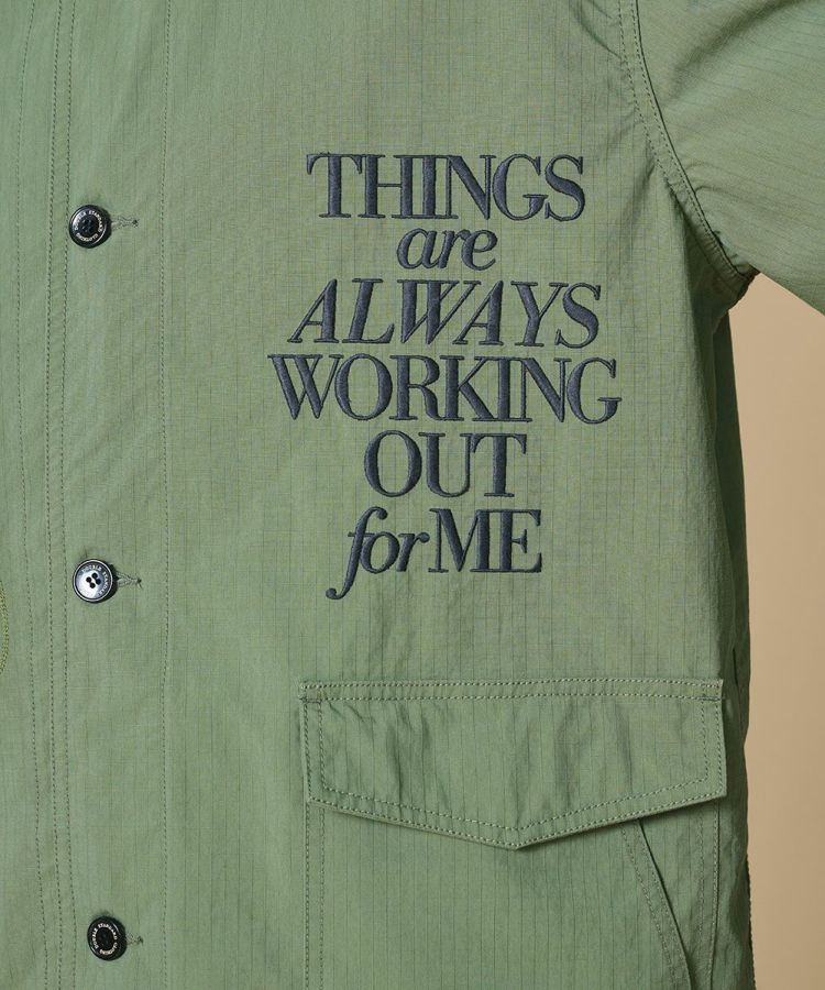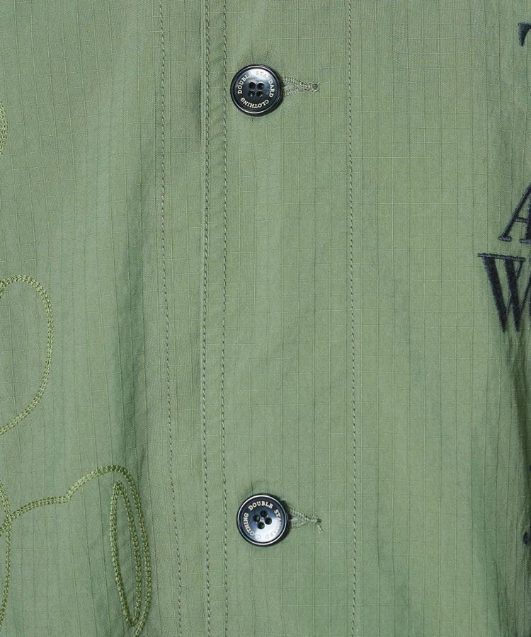 ビッグシルエットが抜け感を演出するミリタリージャケット。コーマ糸のオーガニックコットンとリサイクルナイロンを交織したリップストップ生地に、特殊反発+光沢仕上げ加工を施しました。大胆に配したニジタロウモチーフとロゴ刺繍が、唯一無二の存在感を放つ一着に。同素材のパンツ(型番:0706131261)と合わせれば、統一感のあるミリタリーテイストのセットアップスタイルも楽しめます。