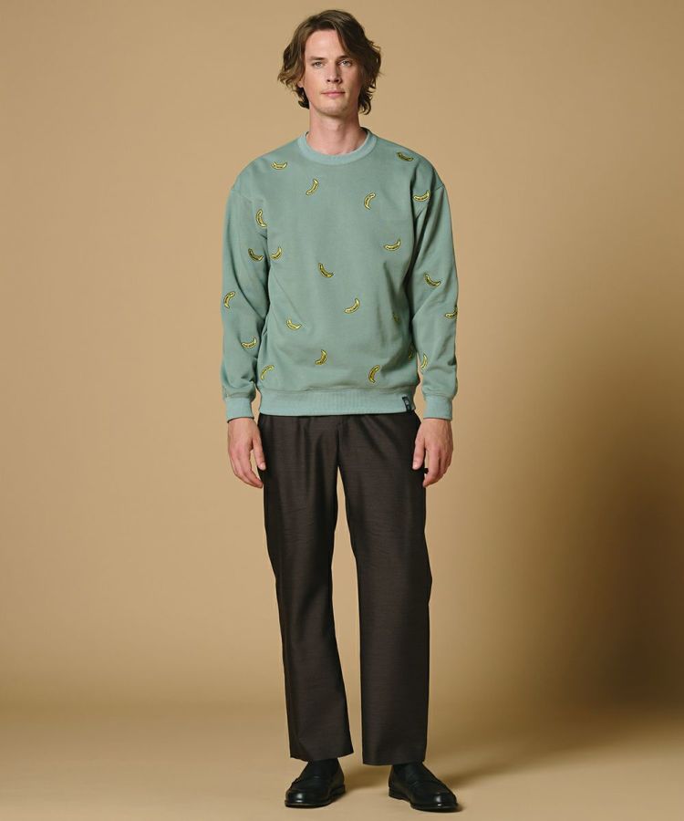 全面にバナナ柄をあしらった、キャッチーなデザインのスウェット。適度な保湿性と吸湿性を兼ね備えた素材を使用し、快適な着心地にも配慮しました。カラーは、スタイリングのアクセントになるピスタチオと、着回し力の高いブラウンの2色展開。デニムやスラックスなどシンプルなボトムスと合わせれば、大人の遊び心を感じるコーディネートが完成します。