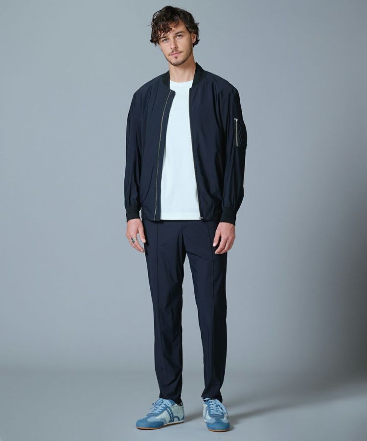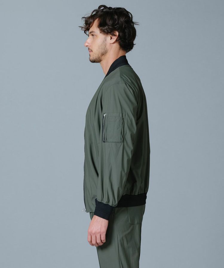 薄手で軽やかなコンチェロナイロンを使用した夏用ブルゾン。さらりと心地良い肌触りながら、接触冷感や紫外線防止機能を兼ね備えた高機能な一着に仕上げました。伸縮性にも優れた素材で、動きやすさもしっかりと配慮。襟や袖、裾がリブ仕様になっているためカジュアルになりすぎず、上品に着こなせるのも魅力です。