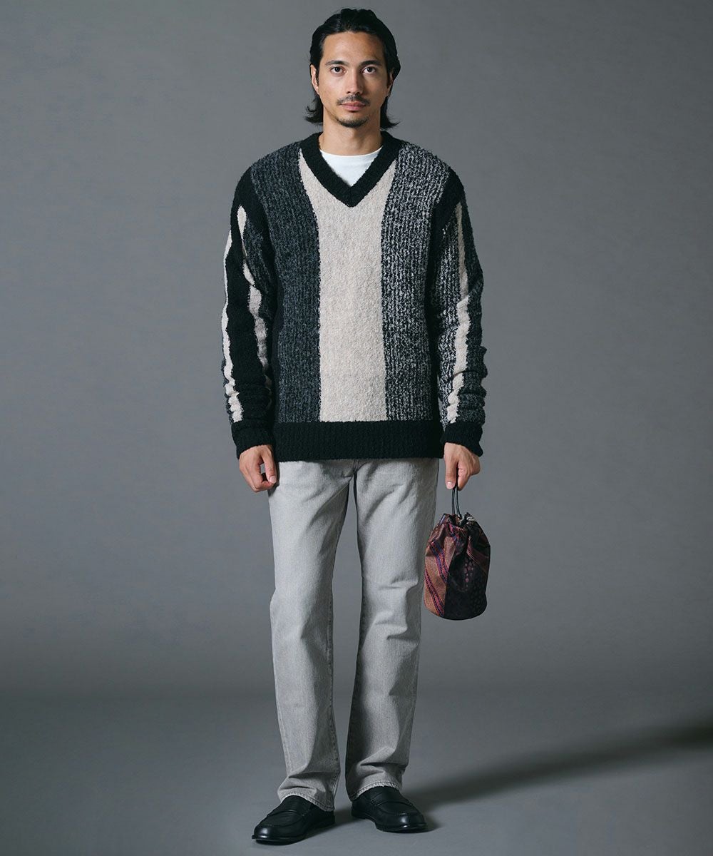 D/him モノトーンストライプニット