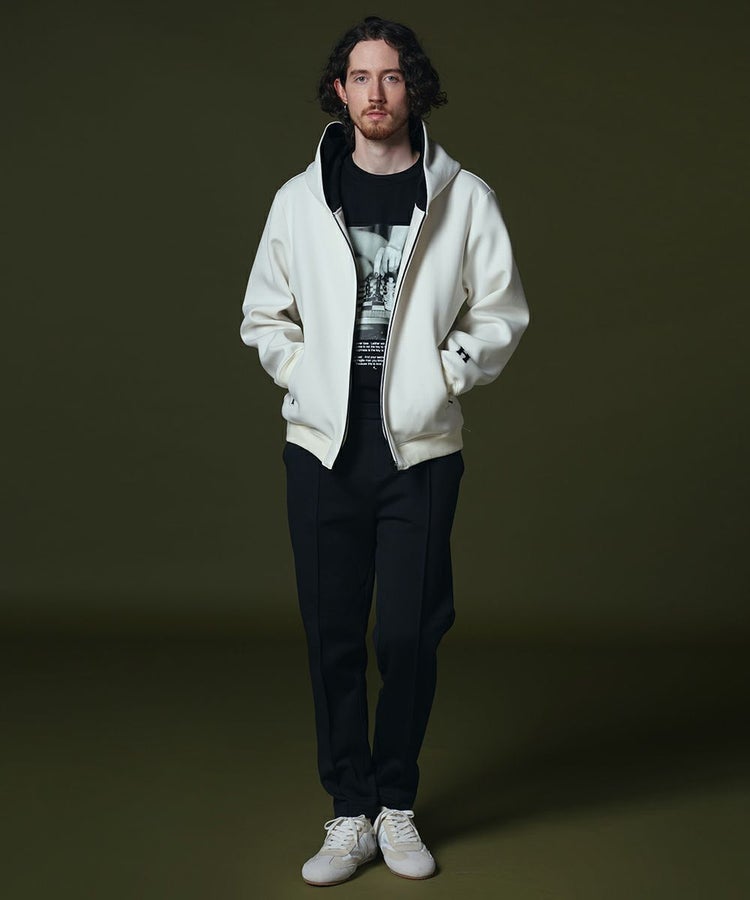 D/him H刺繍ダンボールニットジップパーカー