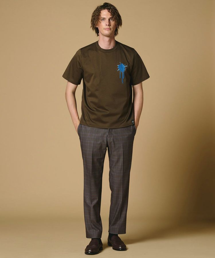 胸元にあしらったペイントモチーフのワンポイント刺繍が遊び心のあるアクセントになったTシャツ。高級原綿スーピマコットンをハイゲージで編み上げ、上品な光沢感とシャープな印象を兼ね備えました。カラーは着回しやすいブラウンとブラックの2色ご用意。レディースサイズ(型番:0208220253)も展開しているため、パートナーとのリンクコーデにもおすすめです。