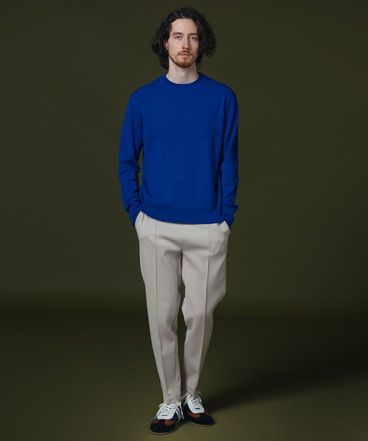 職人の高い技術と伝統を誇り、高級メゾンに愛されてきたイタリアの老舗テキスタイルメーカー、Botto Giuseppe社のニット生地を使用。ゆったりとしたリブ仕様で、リラクシンながらも都会的なムードで着られるセーターです。程よい厚さとコンパクトなシルエットもポイント。アウターに響かず、きれいめなコーディネートが叶います。ベーシックなので着まわし力も抜群。