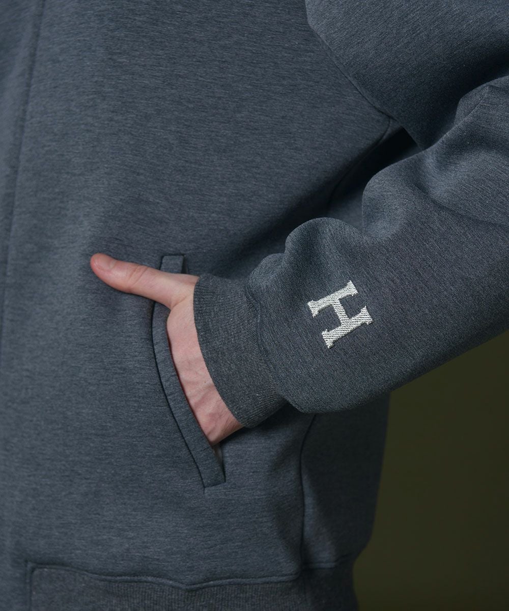 D/him H刺繍ダンボールニットジップパーカー