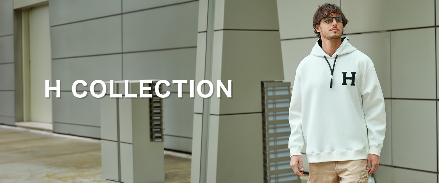 D/him H刺繍立体ロゴダンボールニットパーカー