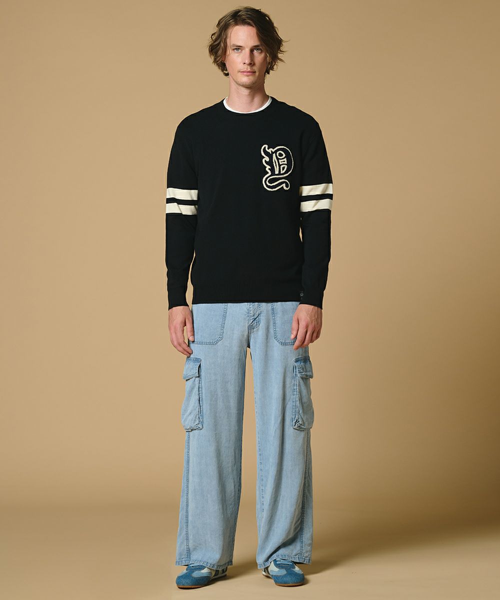 D/him カシミヤライクコットンハブラシ刺繍ニット