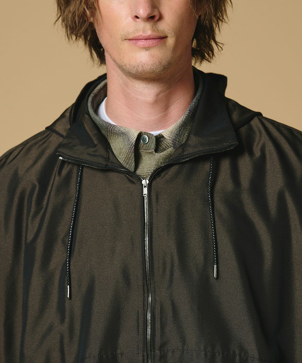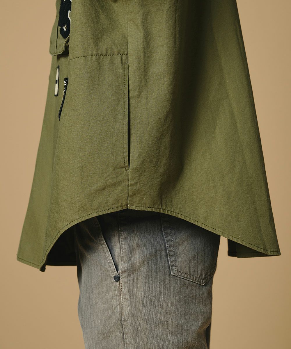 D/him Hエンボス刺繍 レザーダンボールジップパーカー