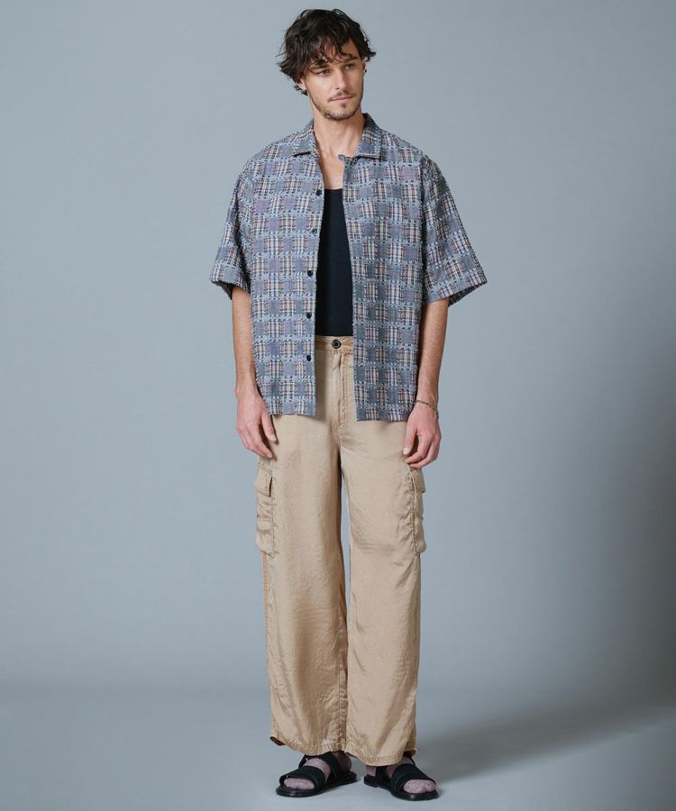 絶妙な光沢感が上品さを引き立てる、キュプラ素材のカーゴパンツ。シルクのような滑らかな質感に、さりげなくヴィンテージ感を加えることで、大人の余裕を感じさせる一本に仕上げました。カラーは、スタイリングに取り入れやすい定番のカーキと、柔らかい印象を与えるベージュの2色展開。足元にサンダルを合わせれば、こなれた夏のカジュアルコーデが完成します。