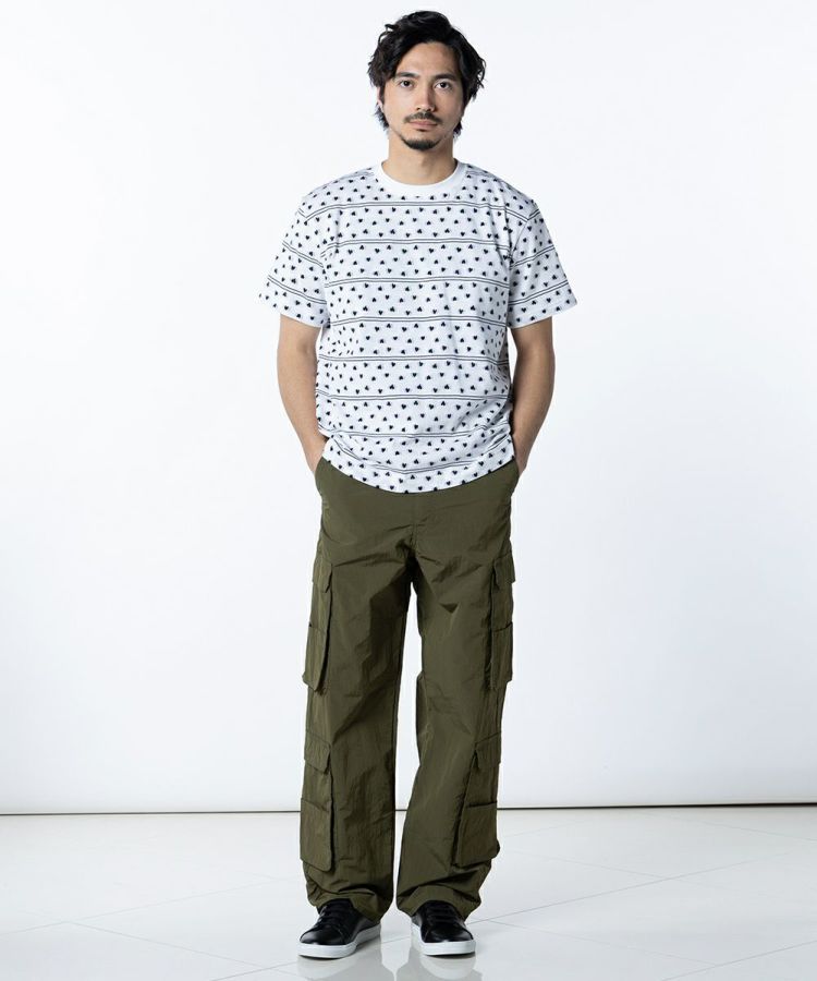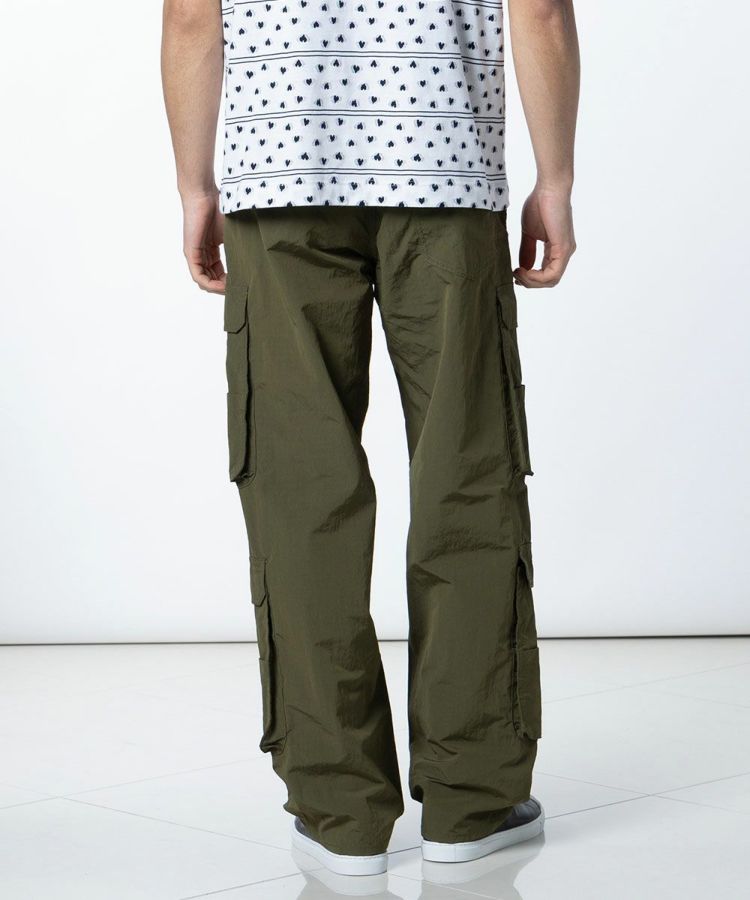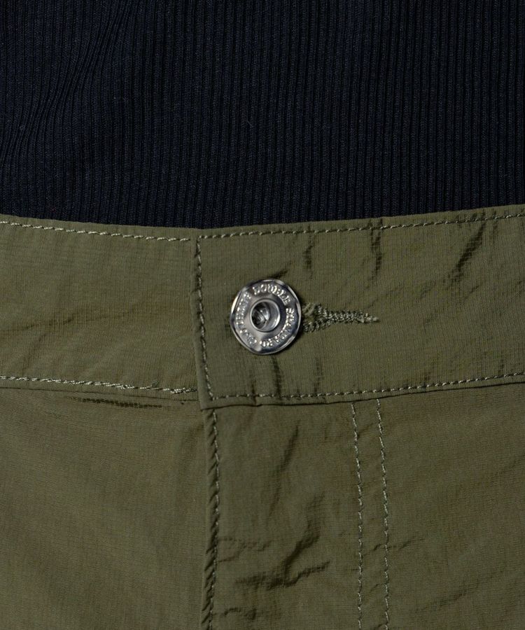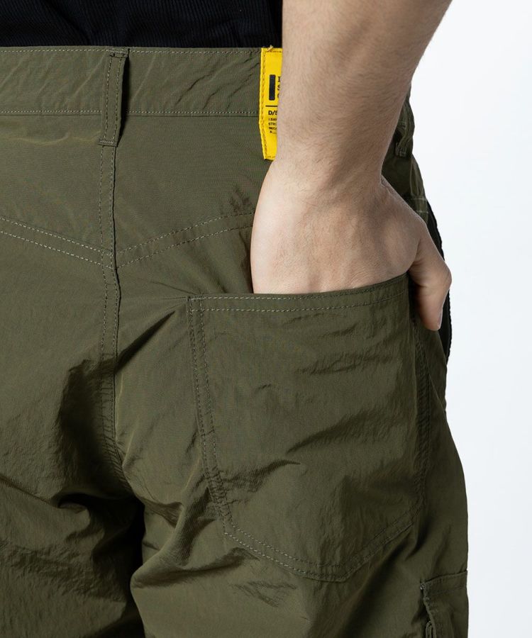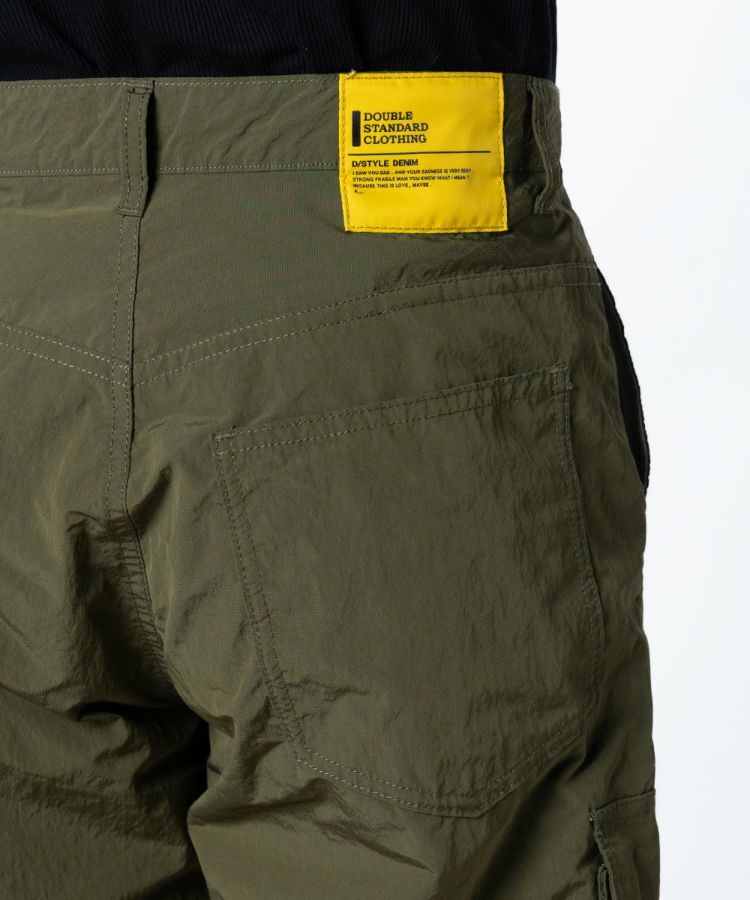 ボリューム感のあるデザインがコーディネートを格上げするナイロンカーゴパンツ。軽量のため穿き心地抜群です。ポリエステルとリサイクルナイロンを合わせてアルカリ処理した糸を使用。ふくらみ感としなやかさ、しっとりとした手触りのタフタ素材に仕上げました。スポーティーな雰囲気がありながらも上品な光沢があり、カジュアルになりすぎず大人っぽく着られる一本です。
