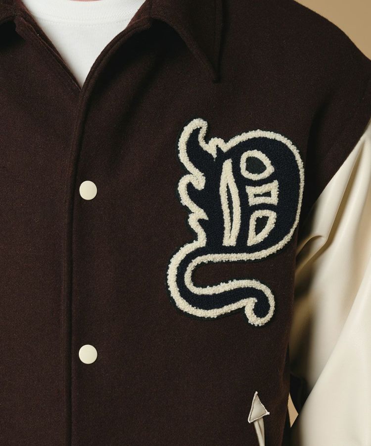 オリジナルワッペンを贅沢にあしらった、存在感抜群のスカジャン。フロントには保温性に優れたウール混素材を使用し、肌寒い季節でも暖かく快適に着用できます。袖部分には通気性に優れたシープスキンを採用し、レザーの上質感と機能性を兼ね備えた仕上がりに。デザイン性と実用性のどちらも妥協しない、今季の主役アウターとしておすすめの一着です。