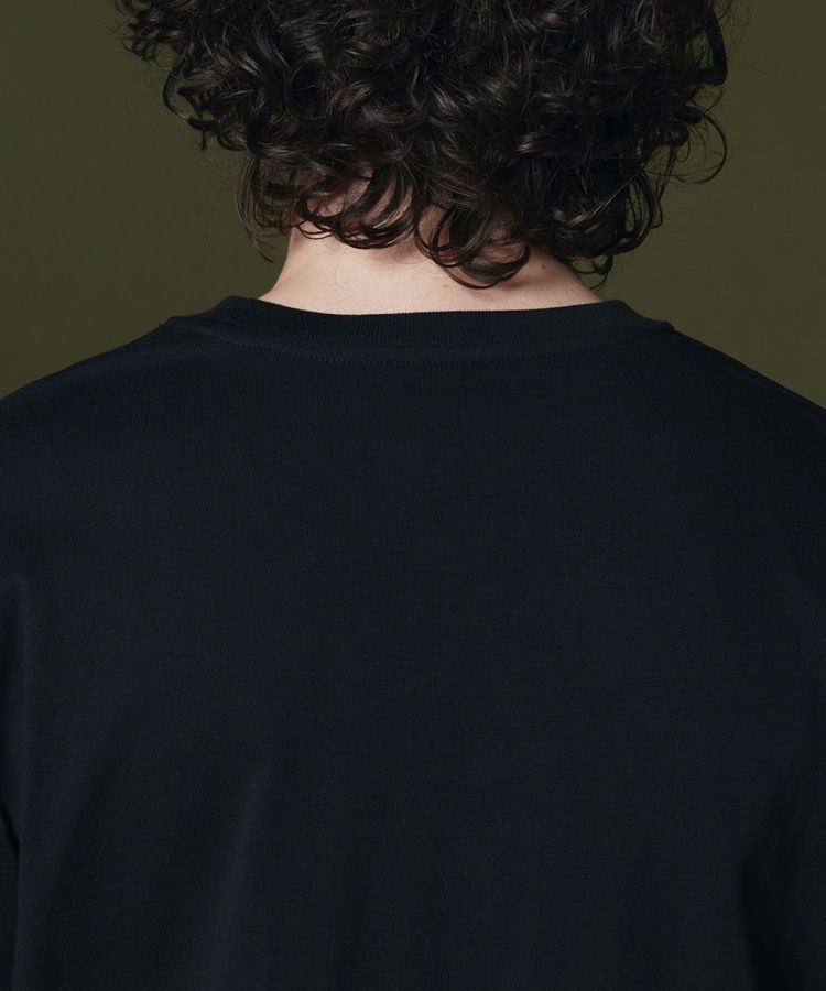 シャリ感のあるコットン天竺素材を使用したロング袖Tシャツ。心地良い肌当たりで、オールシーズン心地良く着用できるのが魅力です。透かしで表現した立体ロゴのプリントは、ブラックの中にオレンジ色が見えるよう加工しているのがポイント。シンプルな中に、さりげないこだわりをプラスしました。程良くコンパクトなシルエットなので、着まわし力も抜群。