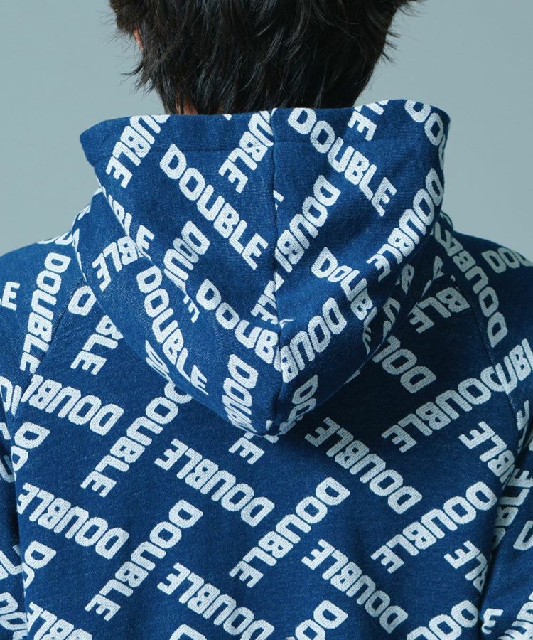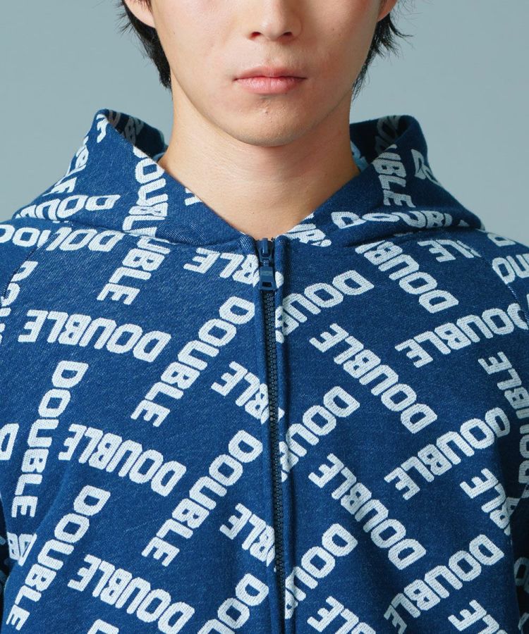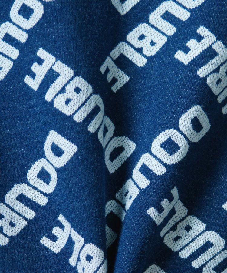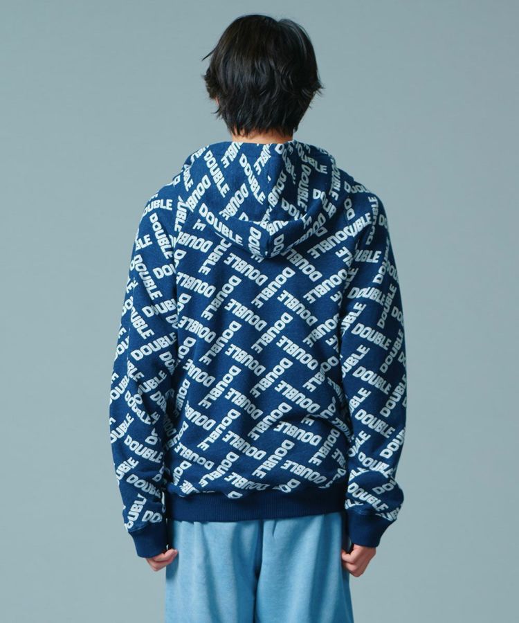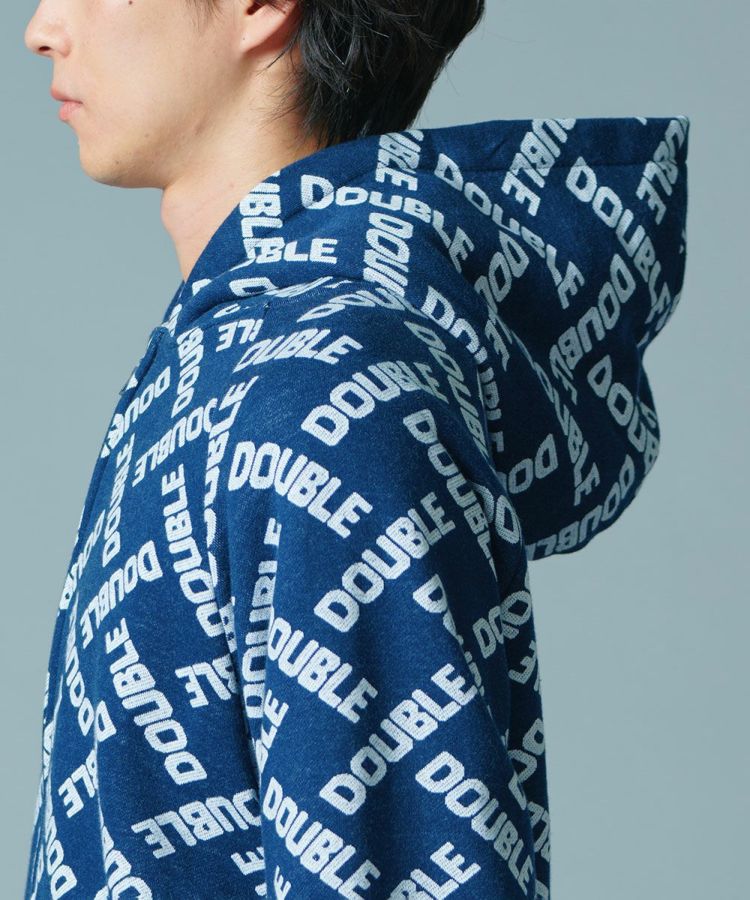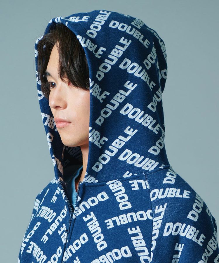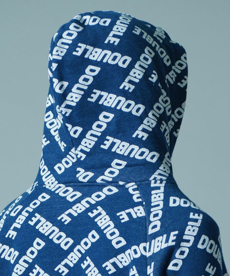 ダブスタのロゴで作ったモノグラム柄がユーモアたっぷりのパーカー。ジャガードの裏毛素材は完全なオリジナルになっています。これひとつでコーディネートが賑やかになるカジュアルアイテムでありながら、落ち着いたブルーのカラーリングが着まわし力抜群。コットン100%で肌触りがいいのも魅力です。