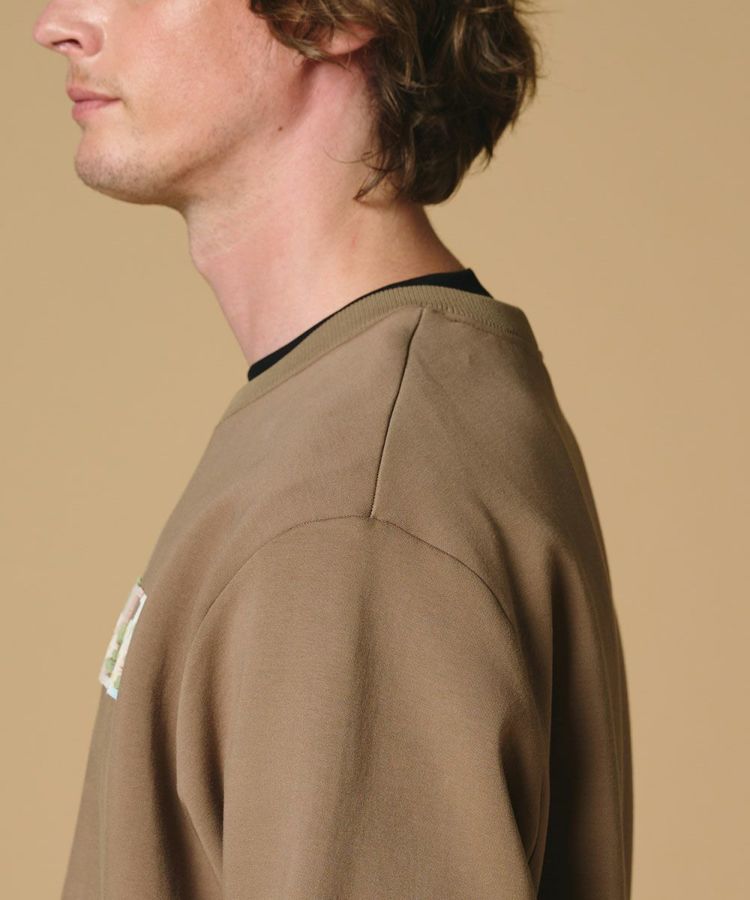 適度なハリ感となめらかな手ざわりが特徴的な綿素材ダンボールニットを使用したプルオーバー。フロントにはダブスタロゴのアートワークをあしらい、さりげなく個性をプラスしています。カラーは肌なじみの良いベージュと、着回し力抜群のブラックの2色をご用意。シンプルなデザインはカジュアルからきれいめまで幅広いスタイルにマッチします。