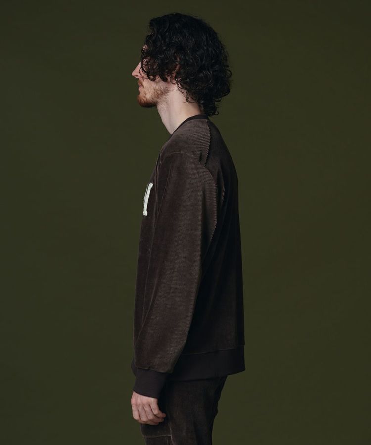 独特の光沢感がインパクトたっぷりな、細畝のコーデュロイで作ったトップス。ラグランスリーブがリラクシンながらも、シックに着られるのが特徴です。また、胸元に施した「H」のサガラ刺繍が心地良いアクセントに。同素材のパンツ(型番:0706291233)とセットアップで着こなすと、こなれ感のある大人カジュアルスタイルが実現します。