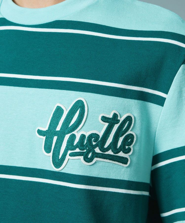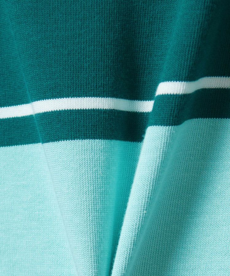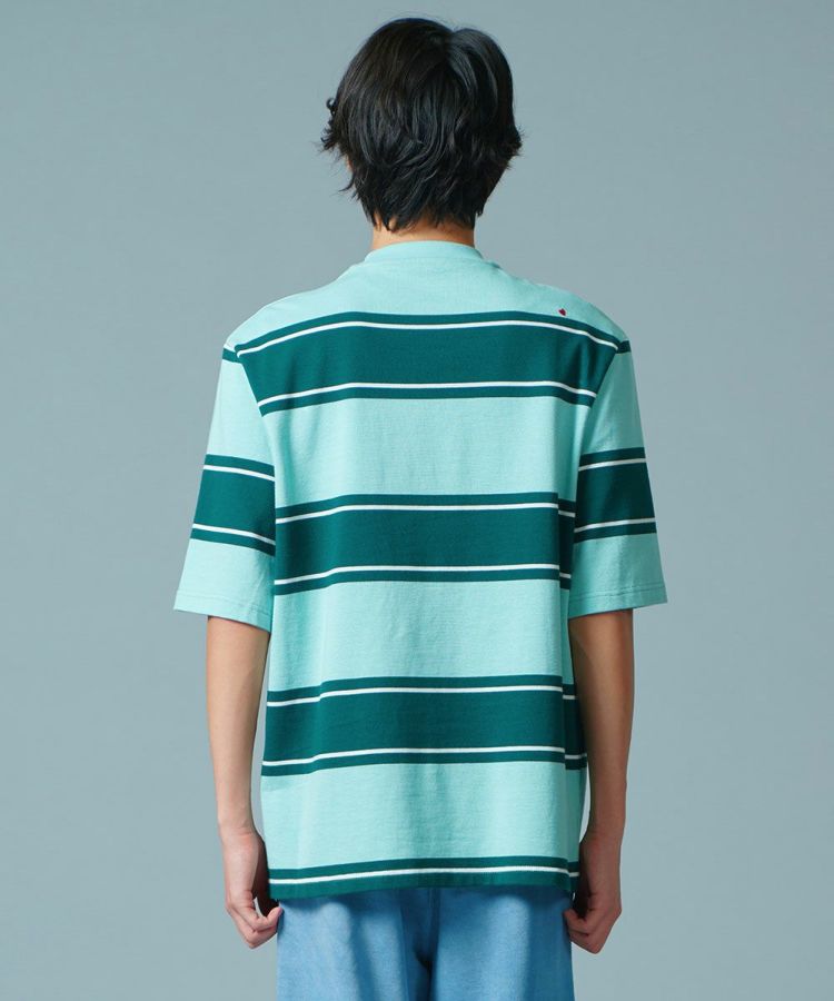 グリーンを基調にした配色が爽やかな、ボーダー柄のTシャツ。チェーン刺繍のワッペンをプラスし、アイビー感のあるアイテムに仕上げました。バックスタイルの右肩には、さりげないハートの刺繍をON。定番人気の天竺素材を使用しており、着心地にも優れています。