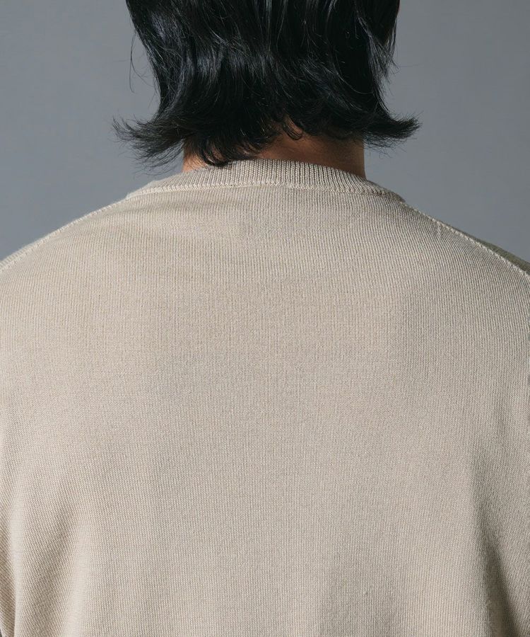 なめらかでソフトな肌触りが魅力の、エキストラファインメリノ梳毛を使用したシンプルなニット。ベージュを基調としたボディに赤のラインがアクセントとなり、スタイリッシュな雰囲気を添えました。薄手で軽やかな仕立ては、秋冬シーズンのレイヤードスタイルに最適。オン・オフを問わず幅広いコーディネートで活躍する一枚です。