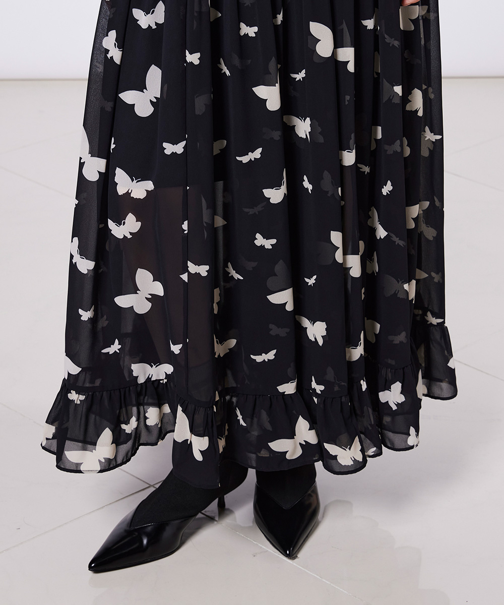 Sov. / バタフライプリント シフォンワンピース