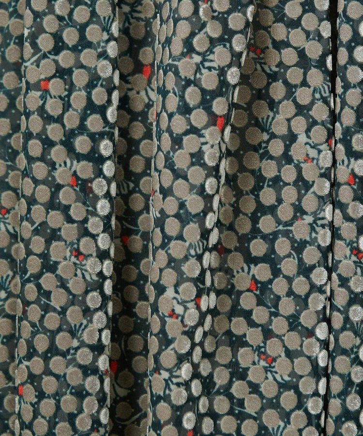 シックなカラーリングで仕上げたドット柄のシフォンワンピース。ところどころに赤の挿し色が入ったドットは、マットな質感がポイント。柄物でありながら甘くならず、大人っぽく着られるのが魅力です。また、パフスリーブはフェミニンでエッジーなアクセントに。ふんわりと女性らしいエレガントさがありつつも、メリハリのあるシルエットでスタイリッシュな佇まいを叶えてくれます。