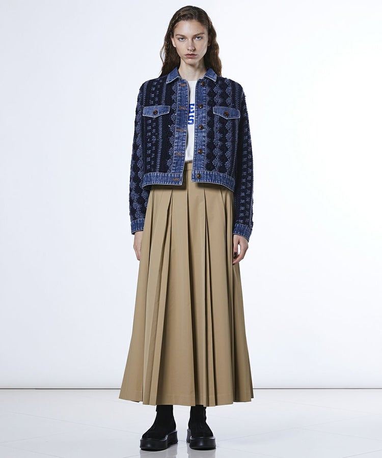 ハンドメイドニットをデニムコンビに仕上げた、ダブスタらしいジャケット。クラフト感をプラスし、他にはないデザインに仕上げました。主役級のアイテムは羽織るだけで、いつものコーディネートをクラスアップ。ホワイトデニムなどとも相性がよく、爽やかな着こなしを叶えてくれます。
