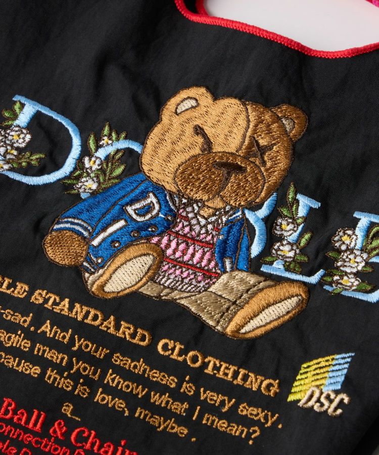 Night Storeで人気のDSCのアイコニックBEARを立体的な刺繍であしらった、遊び心あふれるエコバッグ。ブラックをベースにすることでポップになりすぎず、コーディネートにも取り入れやすいシックなデザインに仕上げました。タフな生地と紐を使用しているので、スマホやお財布などを収納しても安心。ミニサイズで使い勝手が良く、ちょっとしたお出かけにもおすすめです。
