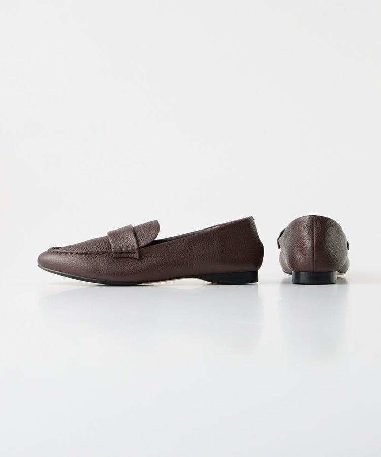 シンプルながら洗練されたデザインが魅力のローファー。表情豊かなシボ感のある牛スムースレザーを贅沢に使用し、上質感漂う一足に仕上げました。コンパクトなフォルムが足元をすっきりと見せてくれるのも魅力。カジュアルなデニムはもちろん、フェミニンなスカートにもなじみ、オン・オフ問わず活躍する一足です。