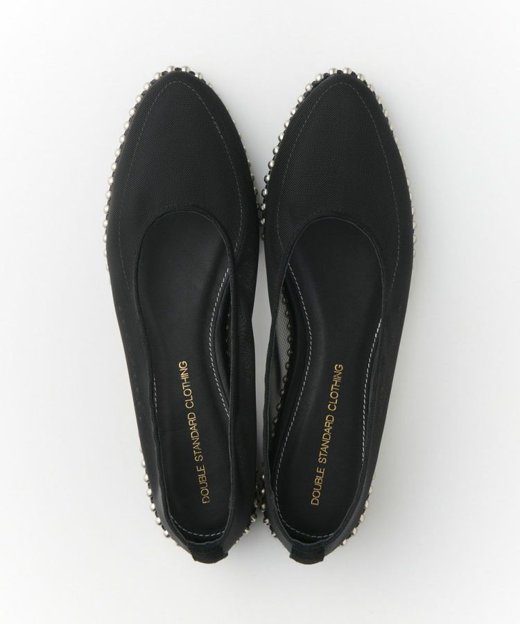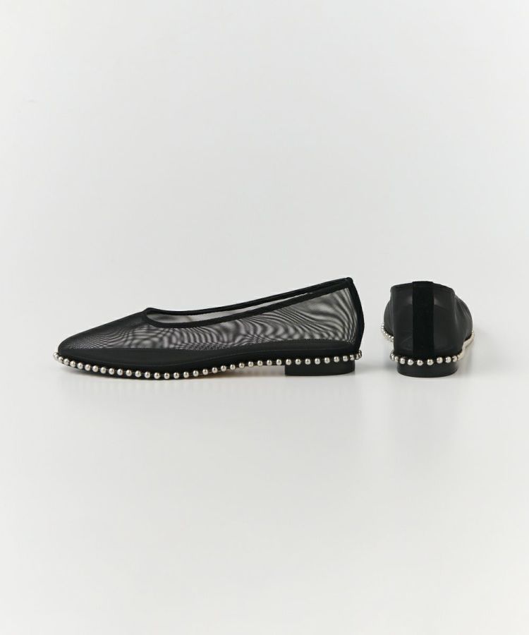 メッシュデザインが足元に程よい抜け感をプラスするパンプス。フラットタイプで、長時間履いても疲れにくい快適な履き心地が魅力です。シルバーのボールチェーンがクールなアクセントとなり、スタイリッシュな印象に。モード感がありながらも涼やかで、幅広いスタイリングに馴染む一足です。