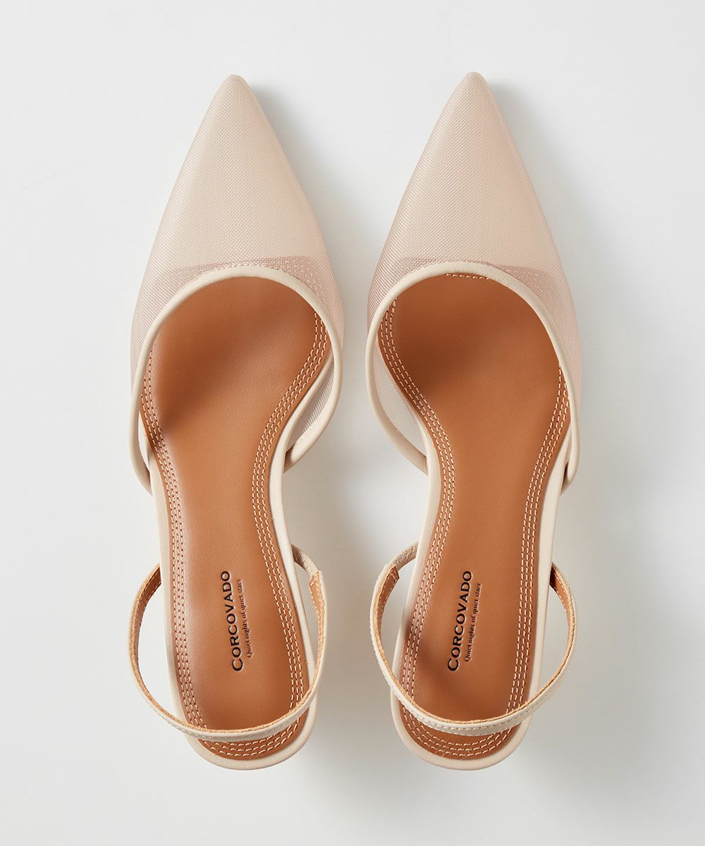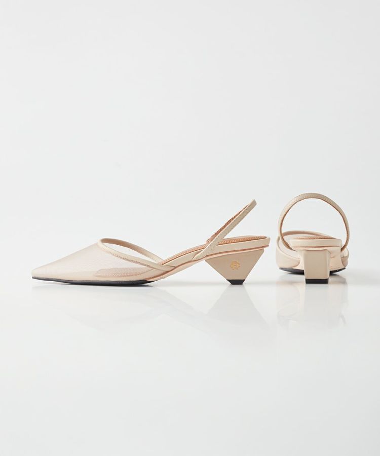 シアー感のあるナイロンメッシュ素材で仕上げたパンプス。通気性が良く、暑い季節でも快適な履き心地を叶えてくれます。スタイリッシュなデザインのヒールは、程よい高さで長時間歩いても疲れにくい仕様に。さらにバックストラップを配置し、歩きやすさだけでなく着脱のしやすさにも配慮しました。カジュアルなパンツからオケージョンシーンまで、幅広く合わせやすい一足です。