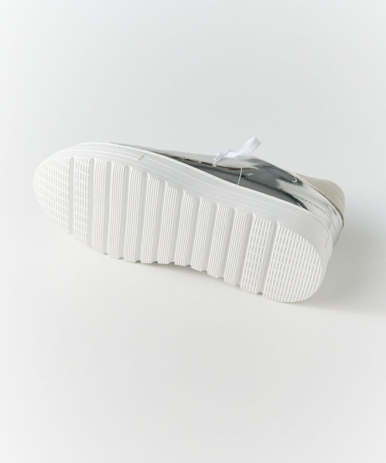 全体をメタリックで仕上げた、モードな雰囲気漂うスニーカー。ボリューム感のあるシルエットながら、シンプルなデザインで足元にクールなアクセントを添えてくれます。トレンド感のあるシルバーカラーは、履くだけでスタイリングを今っぽくアップデート。程よい抜け感をプラスし、コーディネートのポイントになる一足です。