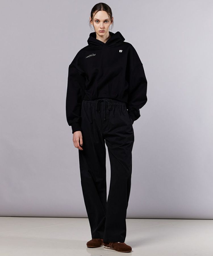 上品な光沢感が魅力的なショート丈のパーカー。裏毛素材にシルケット加工を施すことで、カジュアルな中にも程よいハリ感と高級感をプラスしました。バックには切り替えデザインをあしらい、立体感のある美しいシルエットを演出。ウエスト位置が高く見えるショート丈は、ボリュームのあるボトムスともバランスよく決まり、スタイルアップ効果も抜群です。