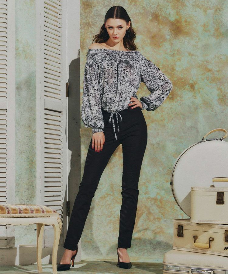 ブラックデニムならではのクールなムードが漂うパンツ。ストレッチ性に優れた素材を使用し、程よいフィット感と動きやすさを兼ね備え、デイリーに快適に着用できます。タイトなシルエットがサイドやバックから見たヒップラインを美しく引き立て、すっきりとした印象に。シーズンを問わず活躍する、汎用性の高い一本です。