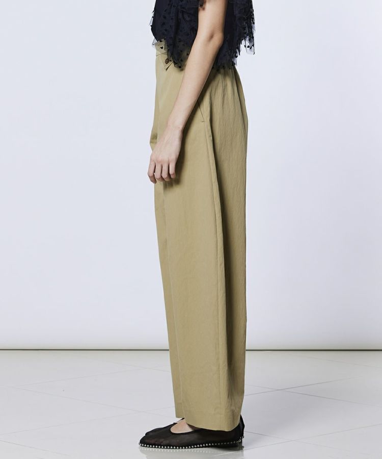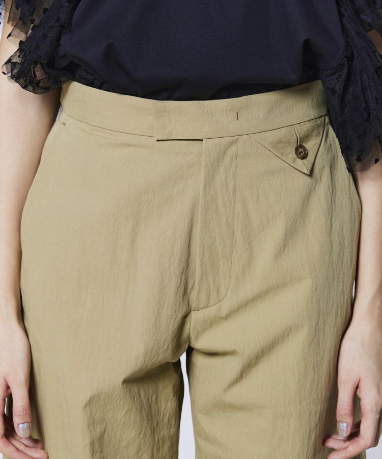 カーブシルエットが気になるラインを自然にカバーしてくれるパンツ。耐久性と防水性に優れ、軽やかでハリのあるウェザークロス素材を使用し、機能性にもこだわりました。カラーは肌なじみがよく着回しやすいサンドベージュとカーキの2色展開。足元にパンプスやヒールを合わせれば、女性らしさを引き立てた大人のカジュアルスタイルが完成します。