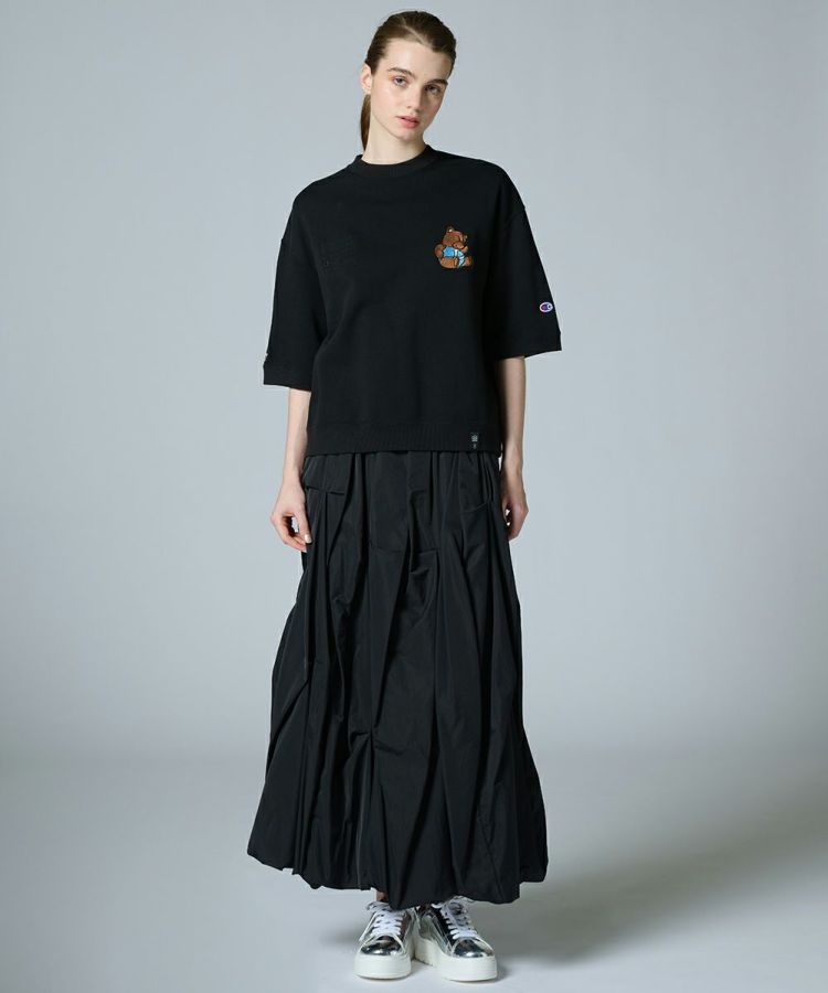 アメリカ発の人気ブランド「Champion」に別注をかけた、オリジナルデザインの半袖スウェット。フロントには「Champion」のロゴと、ダブスタで人気のキャラクター「ニジタロウ」を配し、遊び心のあるデザインに仕上げました。カラーは3種類で自分好みに選べるのが嬉しいポイント。デイリーに取り入れやすく、着回し力の高さも魅力の一着です。