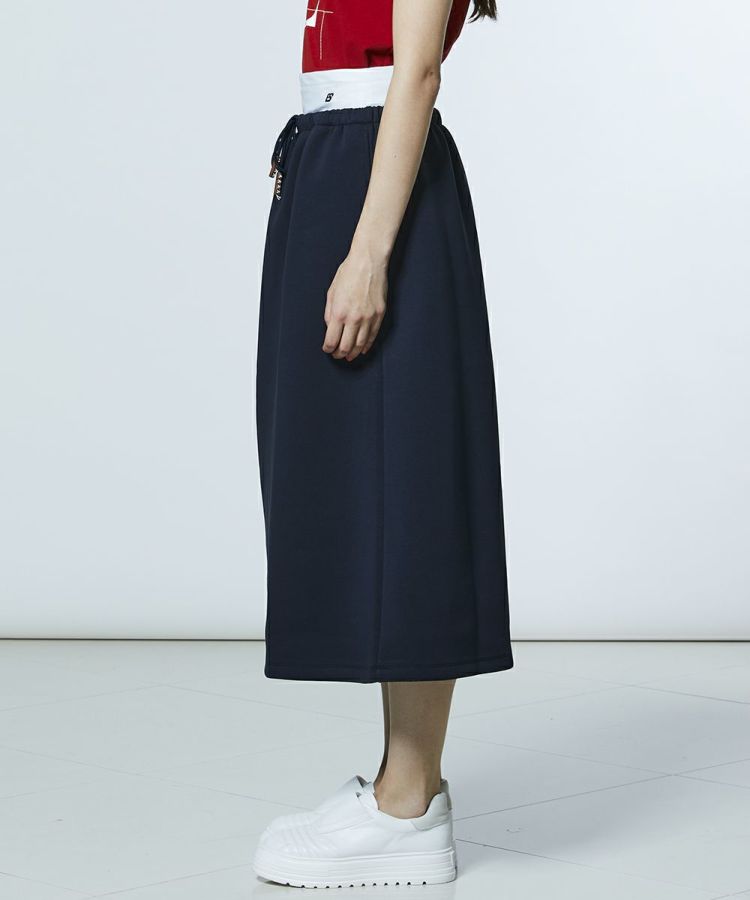柔らかなタッチと、ほどよいハリ感を併せ持つダンボール素材を使用したスカート。ミディ丈のシルエットが、スポーティーな中にも上品な印象を与えます。ウエストはゴム仕様で、長時間の着用でも快適な穿き心地を実現。Tシャツを合わせるだけで、抜け感のあるスポーティースタイルが完成する一着です。