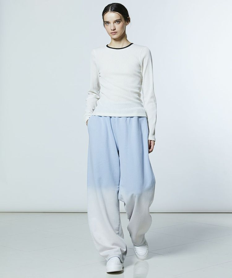 ゆとりのあるシルエットが、リラクシンなスウェットパンツ。さりげないグラデーションで奥行きのあるカラーリングに仕上げました。ウエストはゴム仕様で、快適な穿き心地も魅力。同素材のパーカー(型番:2508120261)と合わせれば、統一感のあるセットアップスタイルを楽しめます。