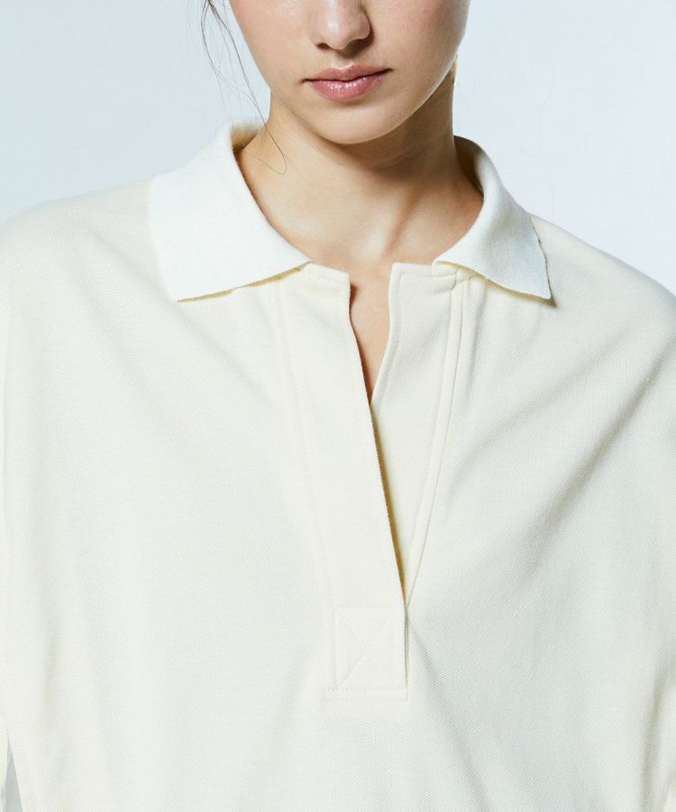 ナイロンブルゾンとポロシャツをドッキングしたようなデザインが魅力的なトップス。異素材の組み合わせがアクセントになり、着るだけでスタイリングに存在感をプラスします。ボリューム感のあるオーバーシルエットが、リラクシンなムードを演出。ベージュとオールブラックの2色展開で、同素材のキュロットパンツ(型番:2506221261)と合わせれば、レトロフェミニンなスポーティースタイルが完成します。