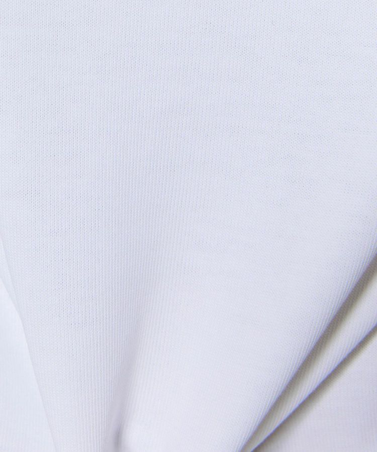 バックスタイルに大胆なカッティングを施し、さりげない肌見せを楽しめるTシャツ。フロントには英文字グラフィックを配し、シンプルな中にアクセントを効かせました。ショート丈のバランスが取りやすいシルエットで、さまざまなボトムスと好相性。デザイン性のある一枚は、同系色のボトムスと合わせた統一感のあるスタイリングもおすすめです。